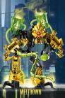 У Мелтдауна желто-черные доспехи, на плечах расположены зеленоватые капсулы, хранящие радиоактивные отходы. Имеет только один красный глаз.