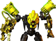 Он вооружен двумя радиоактивными капсулами, которые заряжают метеоробластер. Также имеет хлыст. Оба этих оружия расположены между двумя клешнями, похожими на когти.